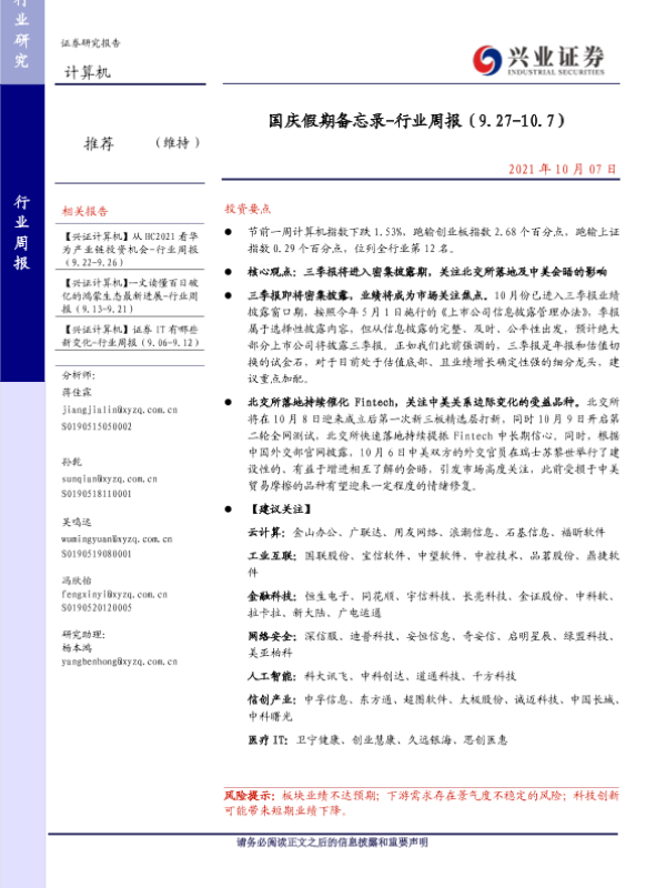 【兴业证券】【20211007】国庆假期备忘录-行业周报(9.27-10.7)-19页