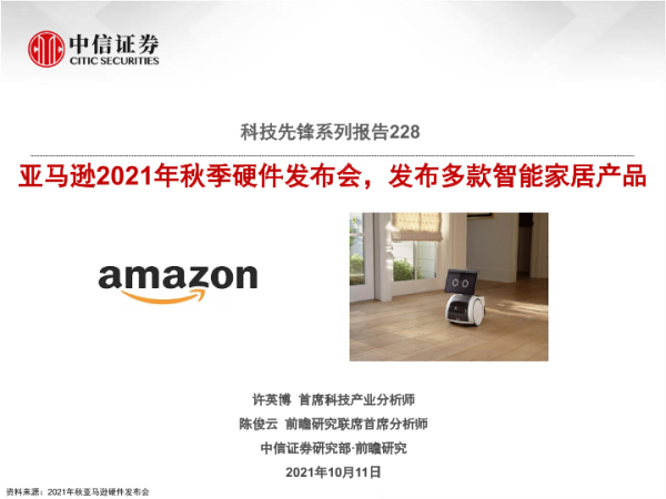 【中信证券】【20211011】科技先锋系列报告228:亚马逊2021年秋季硬件发布会,发布多款智能家居产品-29页