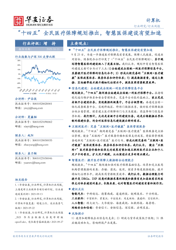 【华安证券】【20211011】“十四五”全民医疗保障规划推出,智慧医保建设有望加速-15页