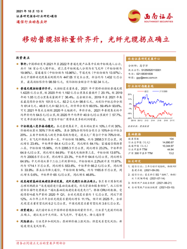 【西南证券】【20211013】移动普缆招标量价齐升,光纤光缆拐点确立-3页