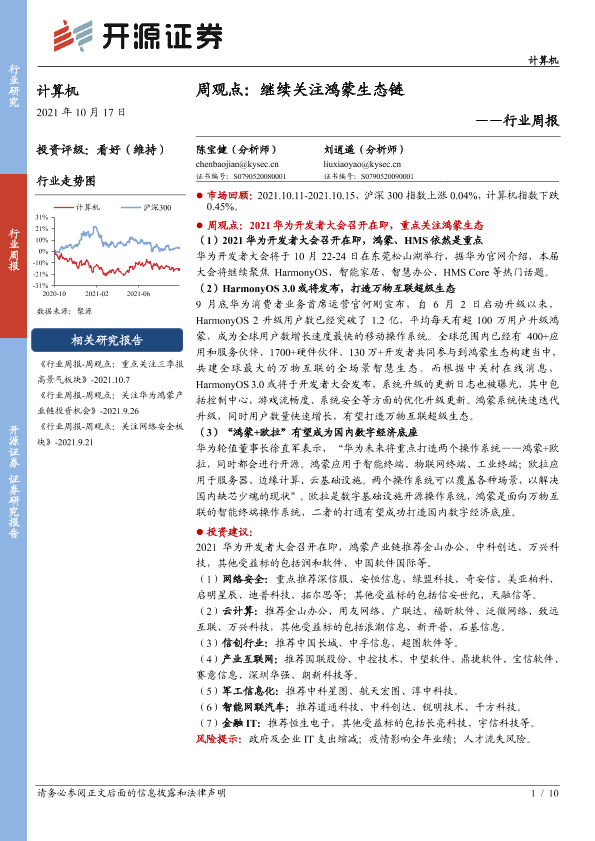 【开源证券】【20211017】20211017-开源证券-计算机周观点:继续关注鸿蒙生态链-10页