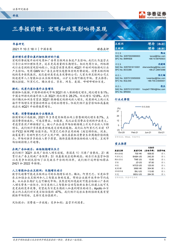 【华泰证券】【20211018】互联网行业三季报前瞻:宏观和政策影响将显现-9页