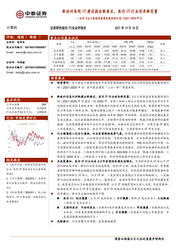 【中泰证券】【20211018】新政对医院IT建设提出新要求,医疗IT行业迎来新变量-2页