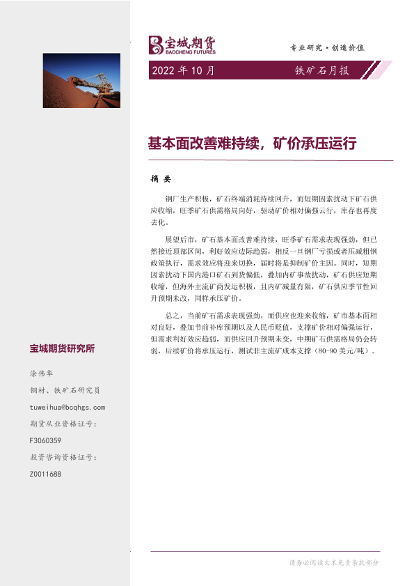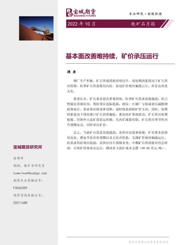 【宝城期货】【20220929】铁矿石月报:基本面改善难持续,矿价承压运行-18页