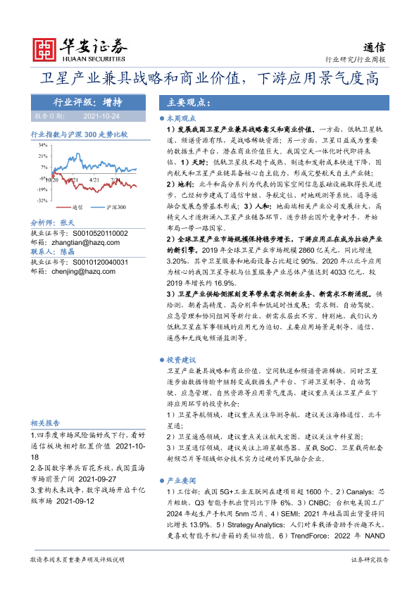 【华安证券】【20211024】20211024-华安证券-通信行业周报:卫星产业兼具战略和商业价值,下游应用景气度高-19页