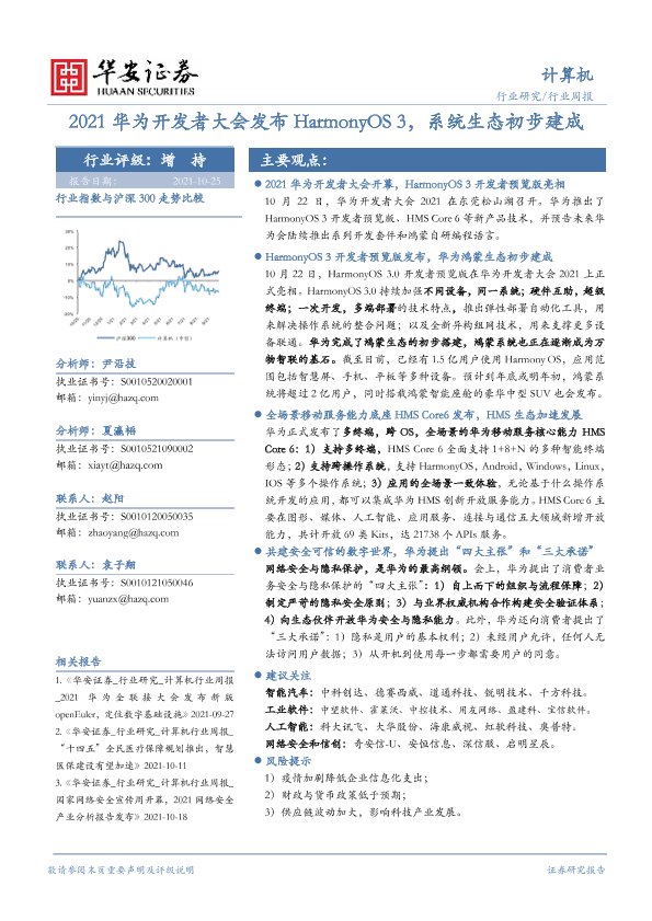 【华安证券】【20211025】2021华为开发者大会发布HarmonyOS 3,系统生态初步建成-15页