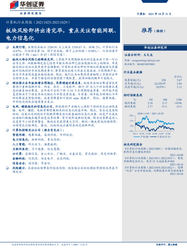 【华创证券】【20211031】计算机行业周报:板块风险即将出清完毕,重点关注智能网联、电力信息化-4页