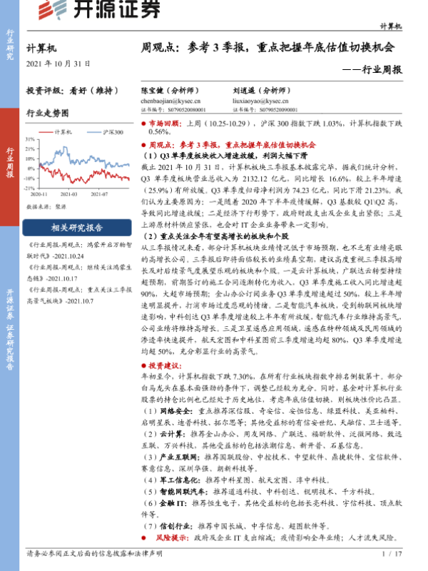 【开源证券】【20211031】20211031-开源证券-计算机周观点:参考3季报,重点把握年底估值切换机会-17页