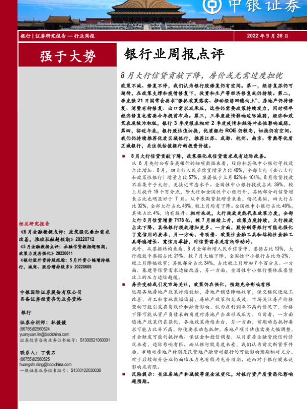 【中银证券】【20220926】银行业周报点评:8月大行信贷贡献下降,房价或无需过度担忧-20页