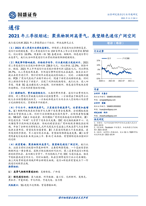 【国盛证券】【20211104】2021年三季报综述:聚焦物联网高景气,展望绿色通信广阔空间-23页