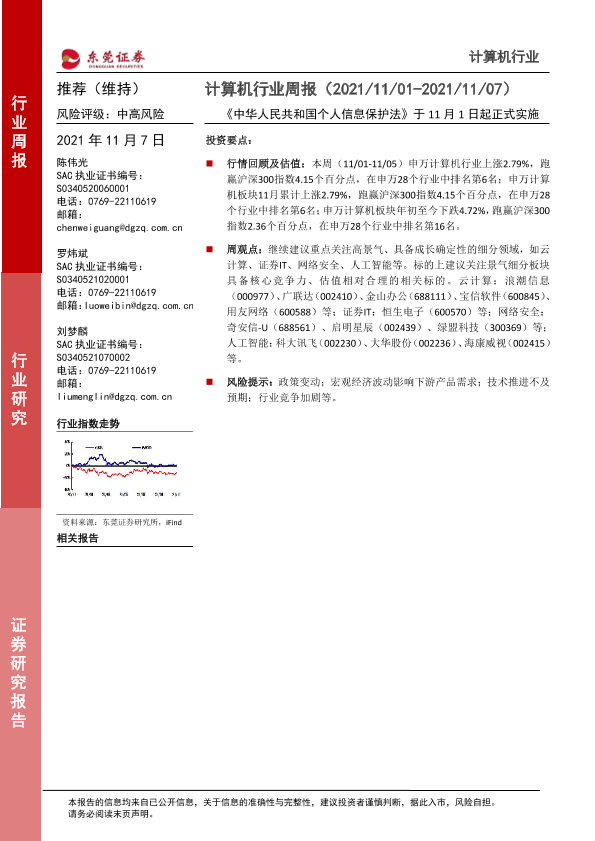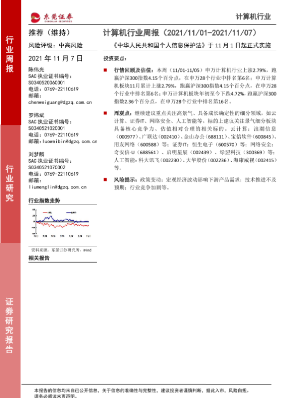 【东莞证券】【20211107】20211107-东莞证券-计算机行业周报:《中华人民共和国个人信息保护法》于11月1日起正式实施-9页