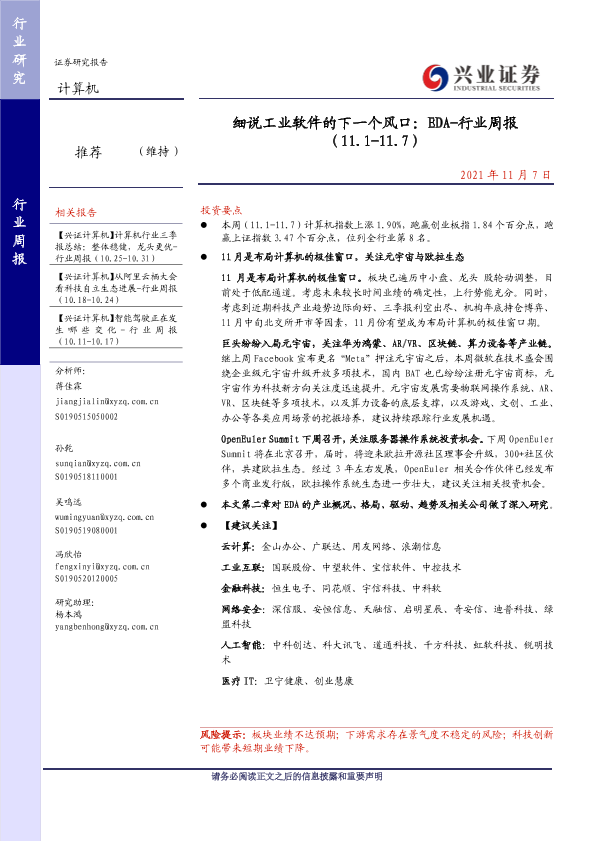 【兴业证券】【20211107】细说工业软件的下一个风口:EDA-行业周报 (11.1-11.7)-31页