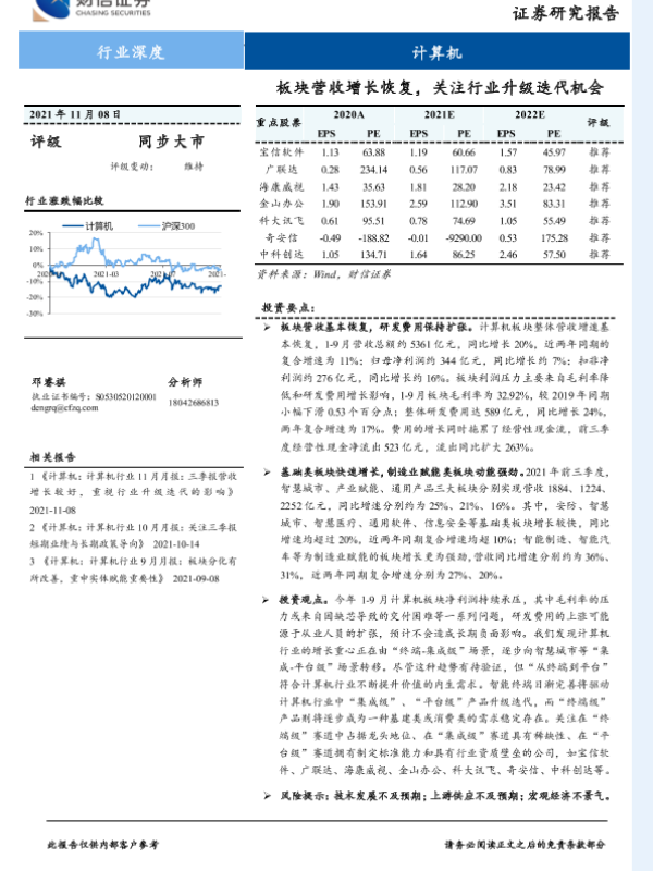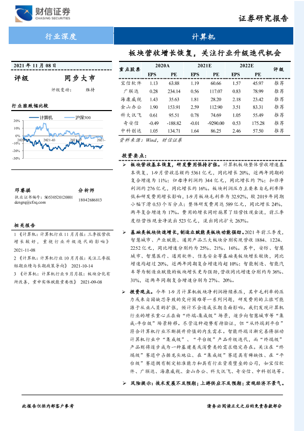 【财信证券】【20211108】计算机行业深度:板块营收增长恢复,关注行业升级迭代机会-17页