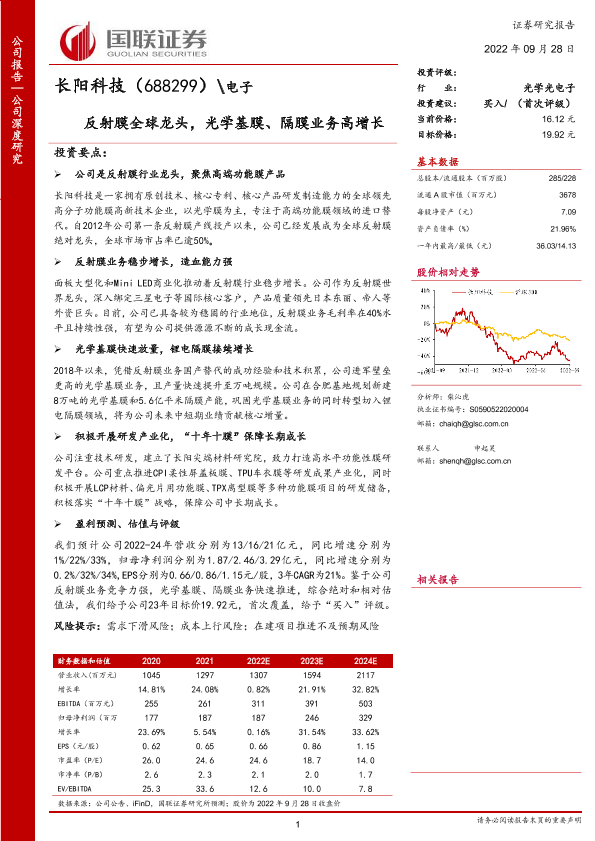 【国联证券】【20220928】长阳科技-688299-反射膜全球龙头,光学基膜、隔膜业务高增长-28页