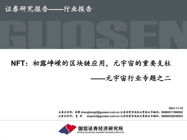 【国信证券】【20211110】NFT:初露峥嵘的区块链应用,元宇宙的重要支柱-35页