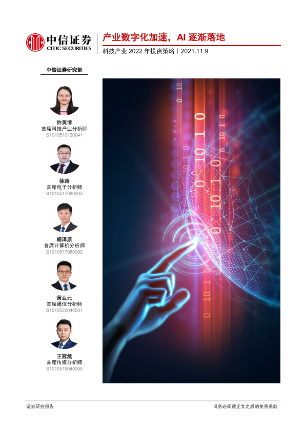 【中信证券】【20211109】科技产业2022年投资策略:产业数字化加速,AI逐渐落地-52页
