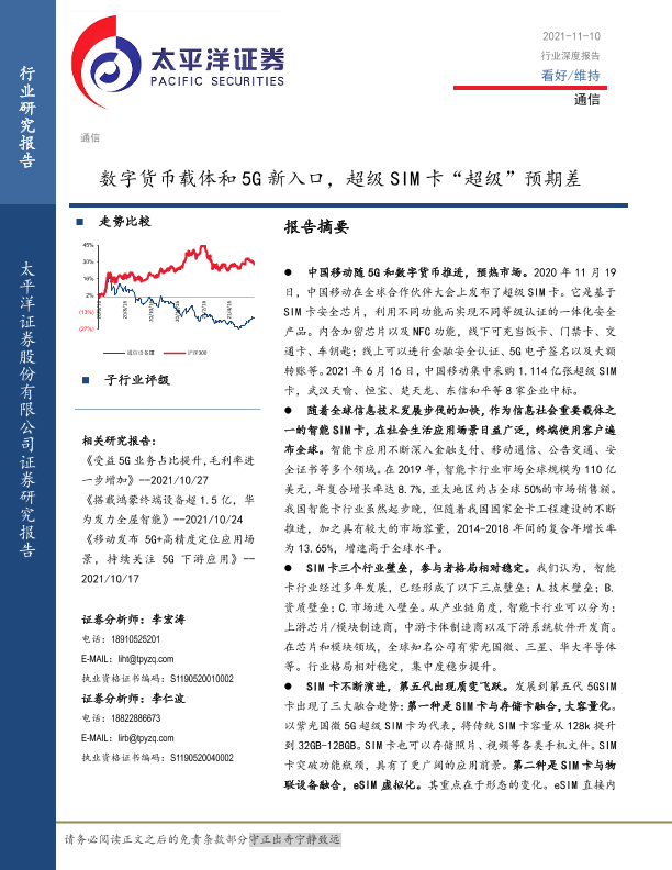 【太平洋证券】【20211110】通信行业深度报告:数字货币载体和5G新入口,超级SIM卡“超级”预期差-33页