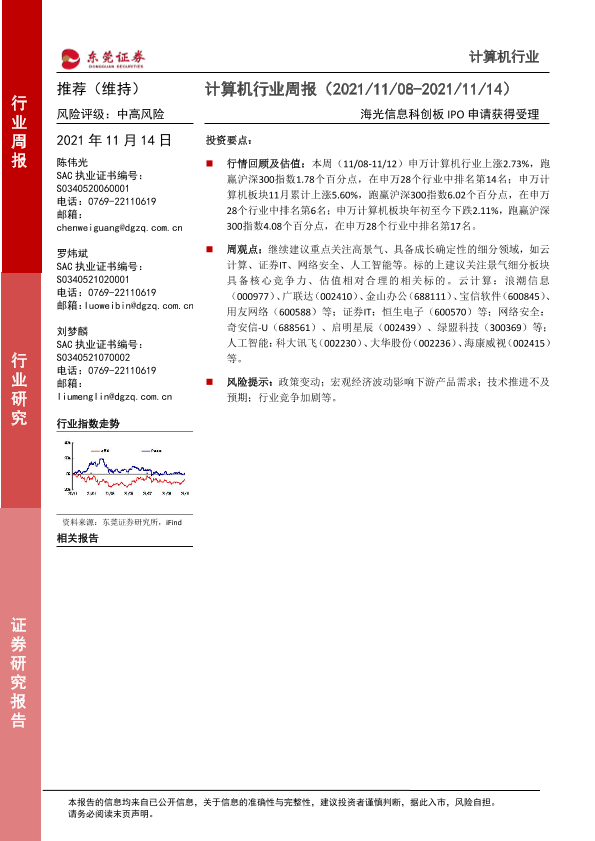 【东莞证券】【20211114】计算机行业周报:海光信息科创板IPO申请获得受理-9页
