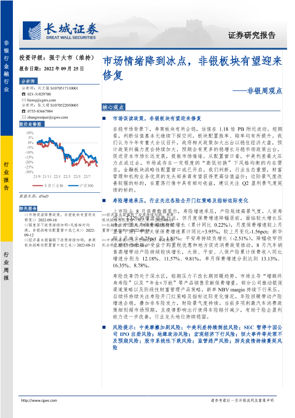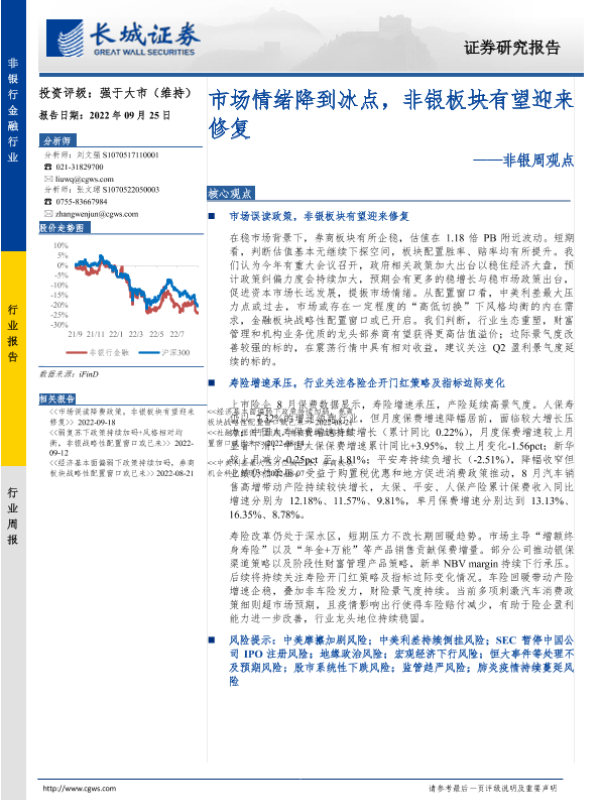 【长城证券】【20220925】非银行业周观点:市场情绪降到冰点,非银板块有望迎来修复-34页