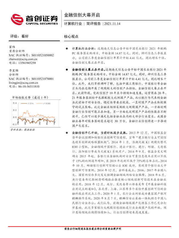 【首创证券】【20211114】计算机行业简评报告:金融信创大幕开启-3页