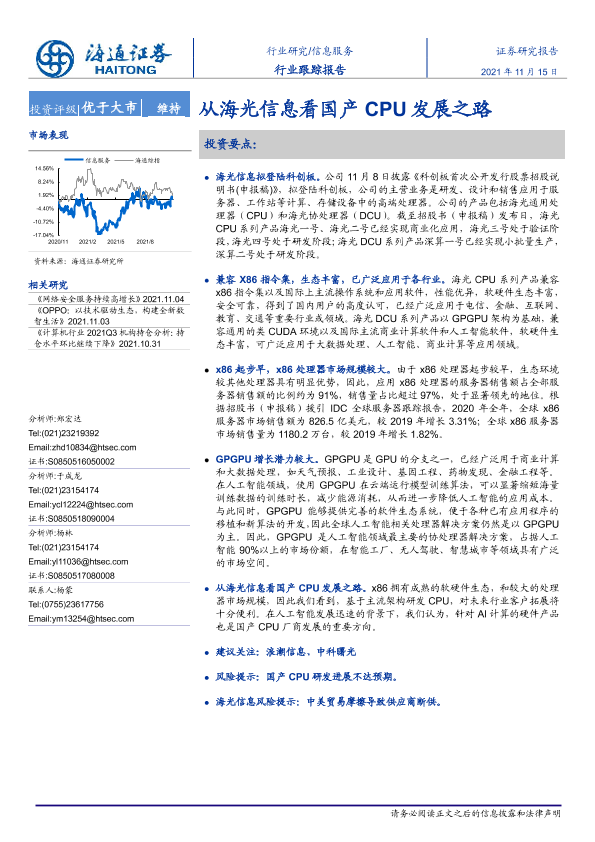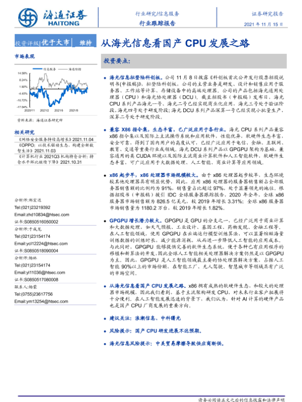 【海通证券】【20211115】信息服务行业跟踪报告:从海光信息看国产CPU发展之路-2页