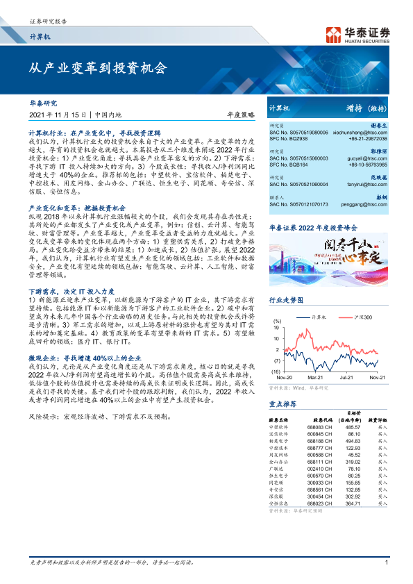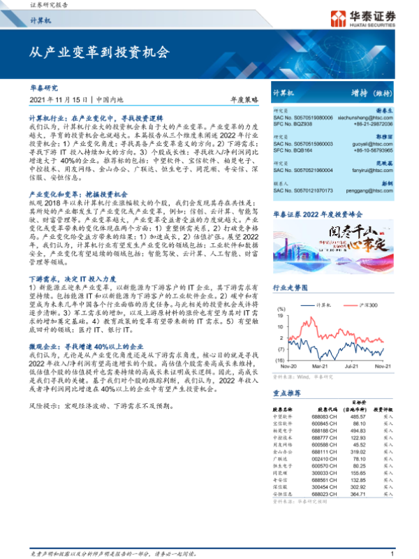 【华泰证券】【20211115】20211115-华泰证券-计算机行业年度策略:从产业变革到投资机会-22页