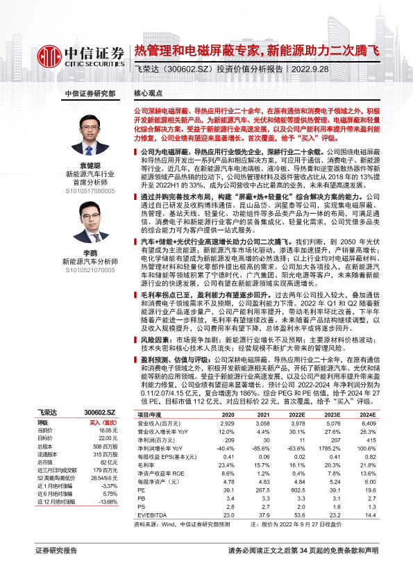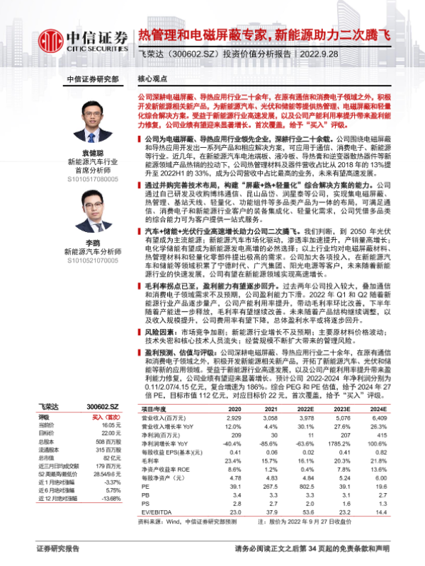 【中信证券】【20220928】飞荣达-300602-投资价值分析报告:热管理和电磁屏蔽专家,新能源助力二次腾飞-35页
