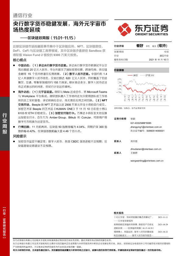 【东方证券】【20211116】20211116-东方证券-区块链双周报:央行数字货币稳健发展,海外元宇宙市场热度延续-11页
