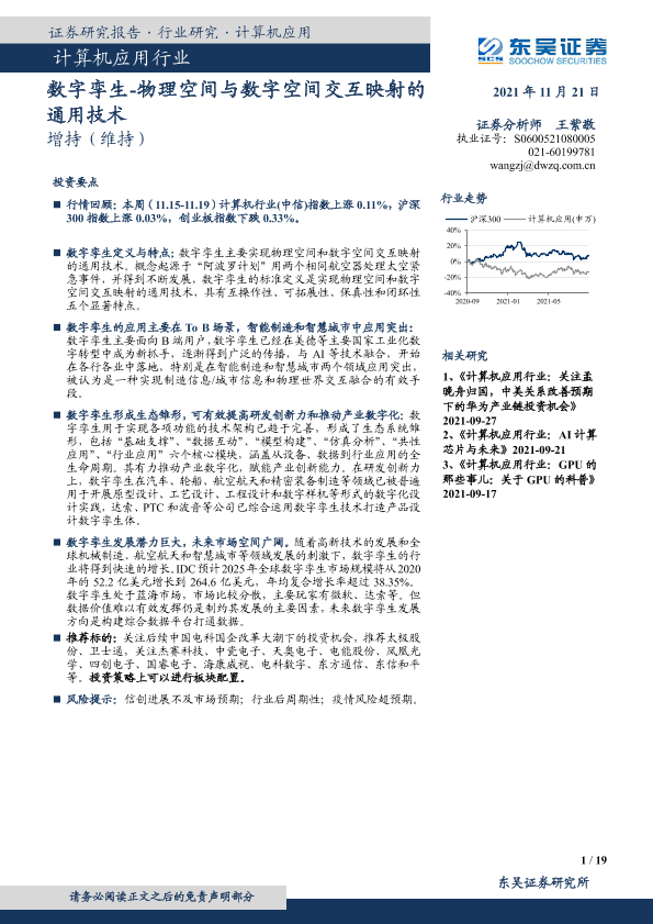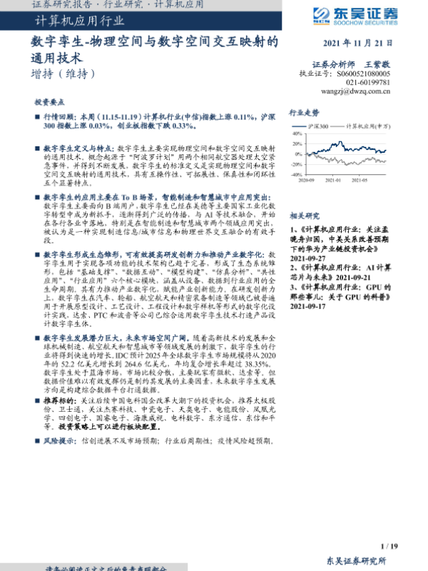 【东吴证券】【20211121】计算机应用行业:数字孪生-物理空间与数字空间交互映射的通用技术-19页