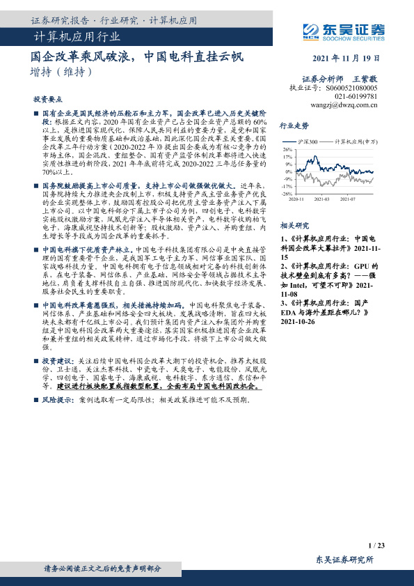 【东吴证券】【20211119】计算机应用行业研究:国企改革乘风破浪,中国电科直挂云帆-23页