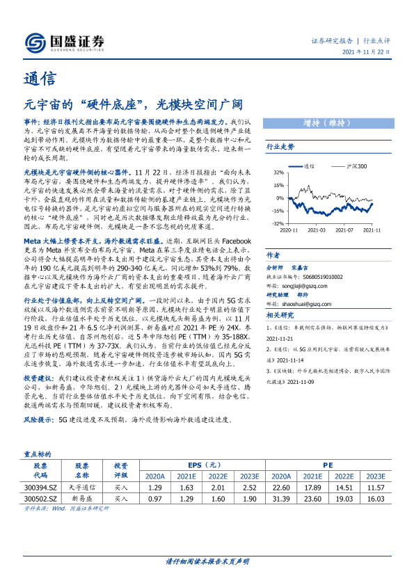 【国盛证券】【20211122】通信行业点评:元宇宙的“硬件底座”,光模块空间广阔-2页