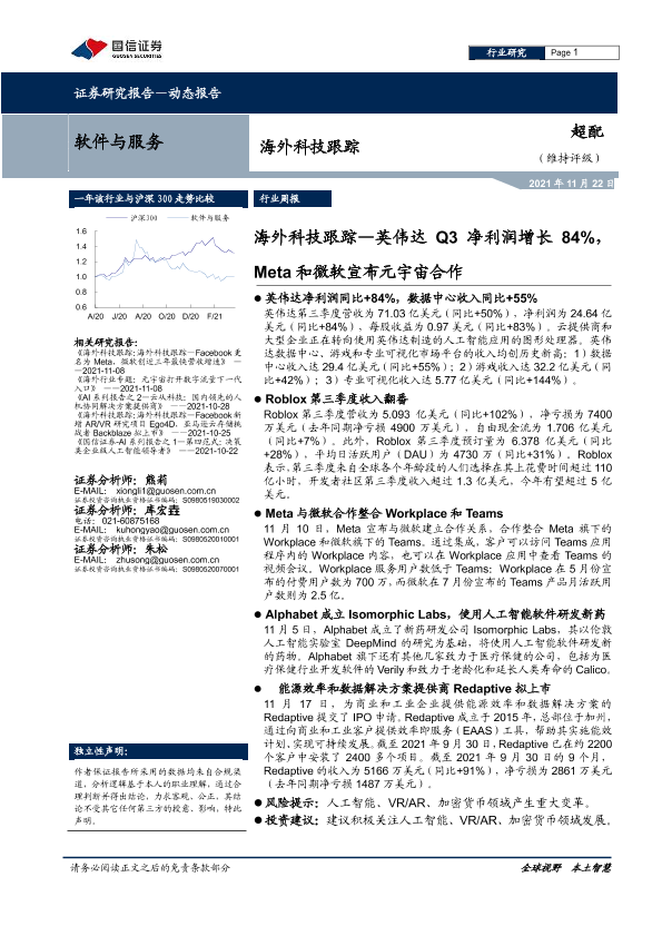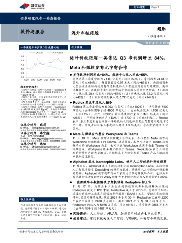 【国信证券】【20211122】海外科技跟踪—英伟达Q3净利润增长84%,Meta和微软宣布元宇宙合作-6页