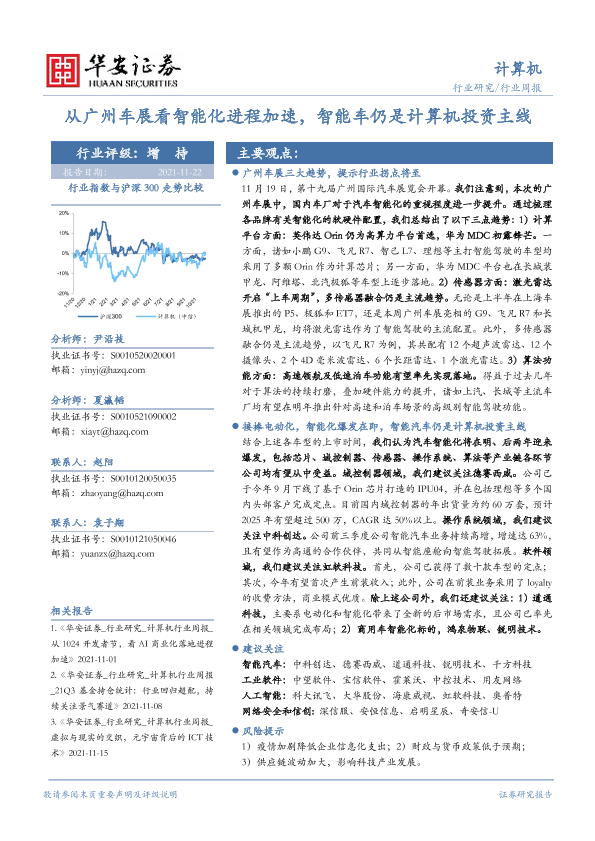 【华安证券】【20211122】从广州车展看智能化进程加速,智能车仍是计算机投资主线-15页