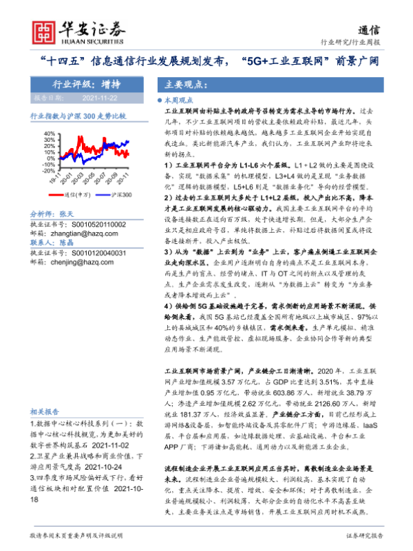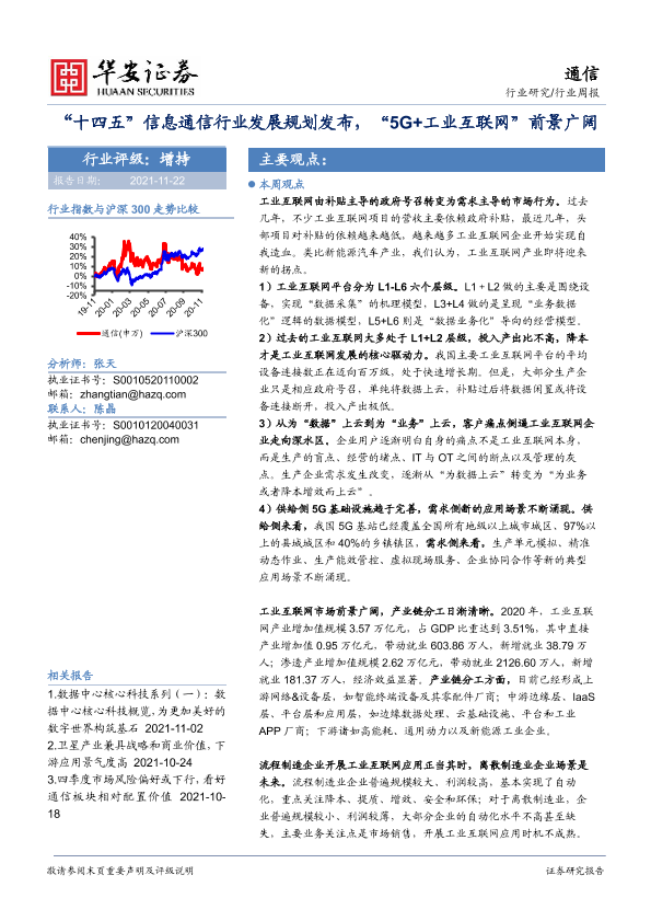 【华安证券】【20211122】“十四五”信息通信行业发展规划发布,“5G+工业互联网”前景广阔-17页
