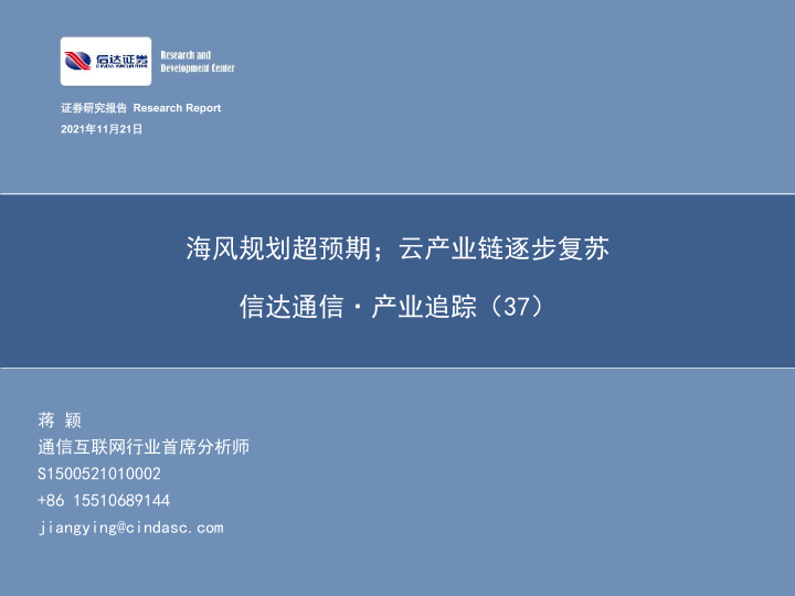 【信达证券】【20211121】信达通信·产业追踪(37):海风规划超预期;云产业链逐步复苏-57页