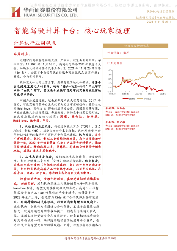 【华西证券】【20211128】计算机行业周观点:智能驾驶计算平台:核心玩家梳理-22页
