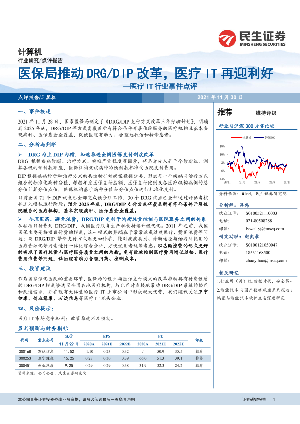 【民生证券】【20211130】医疗IT行业事件点评:医保局推动DRG DIP改革,医疗IT再迎利好-3页