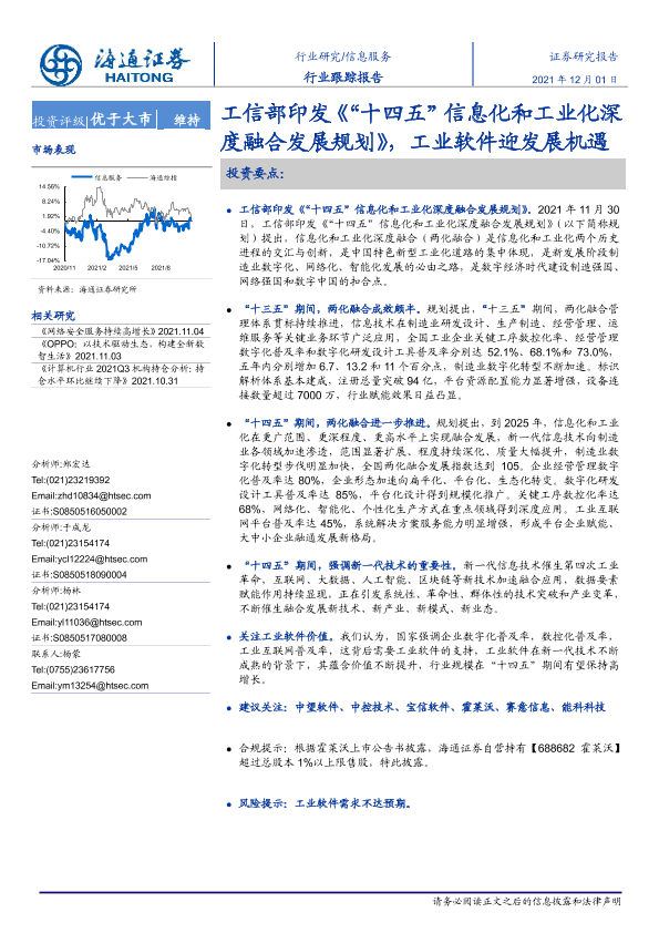 【海通证券】【20211201】工信部印发《“十四五”信息化和工业化深度融合发展规划》,工业软件迎发展机遇-2页