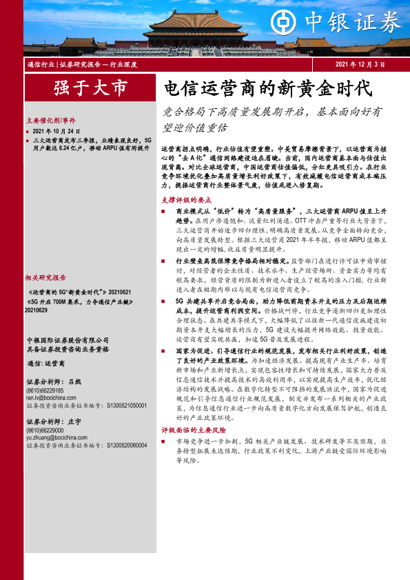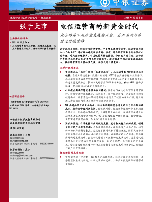 【中银证券】【20211203】电信运营商的新黄金时代:竞合格局下高质量发展期开启,基本面向好有望迎价值重估-53页