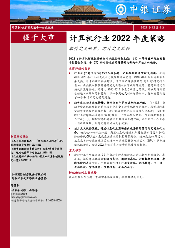 【中银证券】【20211205】计算机行业2022年度策略:软件定义世界,芯片定义软件-30页