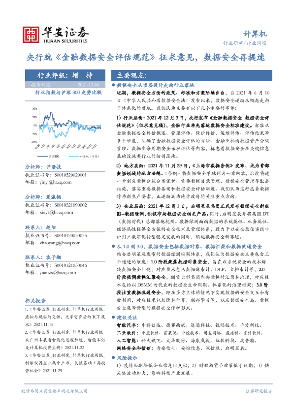 【华安证券】【20211206】计算机行业周报:央行就《金融数据安全评估规范》征求意见,数据安全再提速-13页