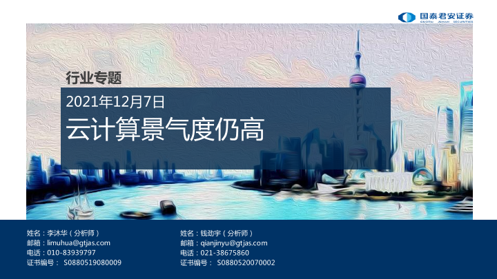 【国泰君安证券】【20211207】云计算行业专题:云计算景气度仍高-15页