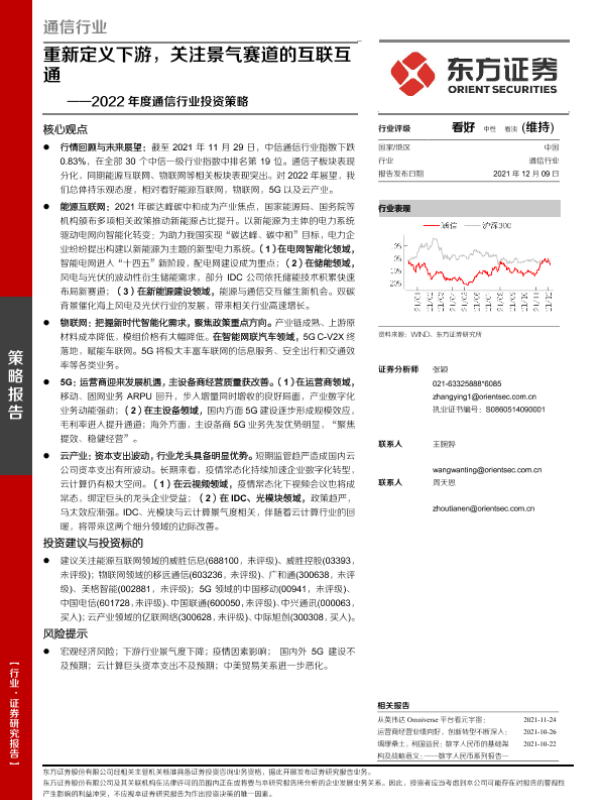 【东方证券】【20211209】2022年度通信行业投资策略:重新定义下游,关注景气赛道的互联互通-43页