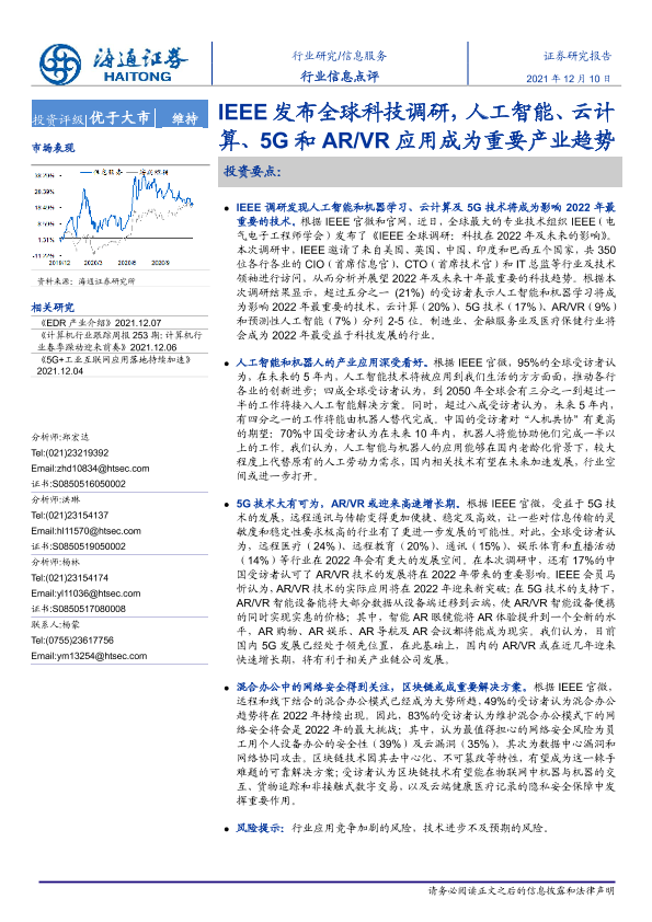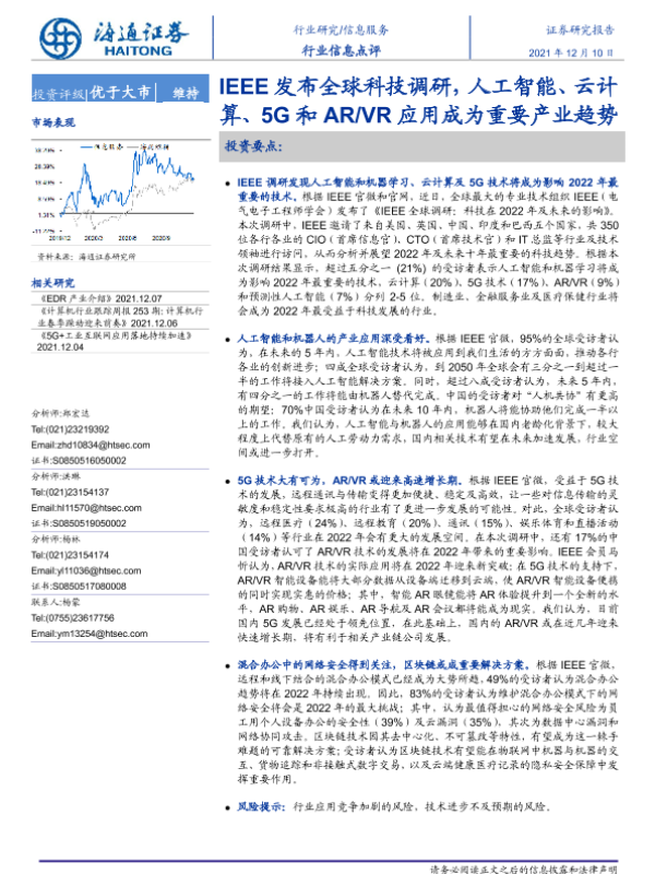 【海通证券】【20211210】IEEE发布全球科技调研,人工智能、云计算、5G和AR VR应用成为重要产业趋势-2页