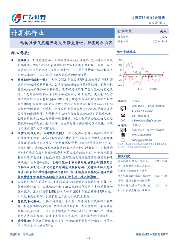 【广发证券】【20211212】20211212-广发证券-计算机行业:结构性景气度增强与龙头修复并进、配置时机凸显-9页