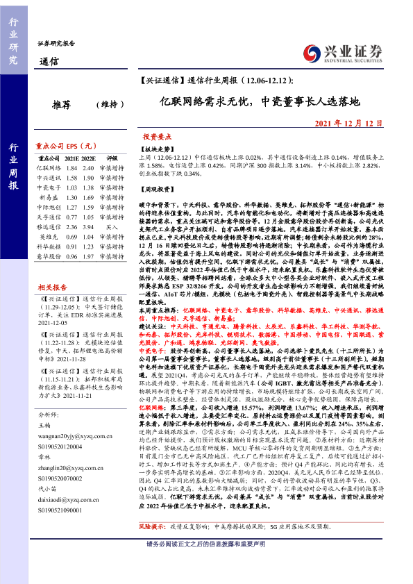 【兴业证券】【20211212】【兴证通信】通信行业周报(12.06-12.12):亿联网络需求无忧,中瓷董事长人选落地-26页
