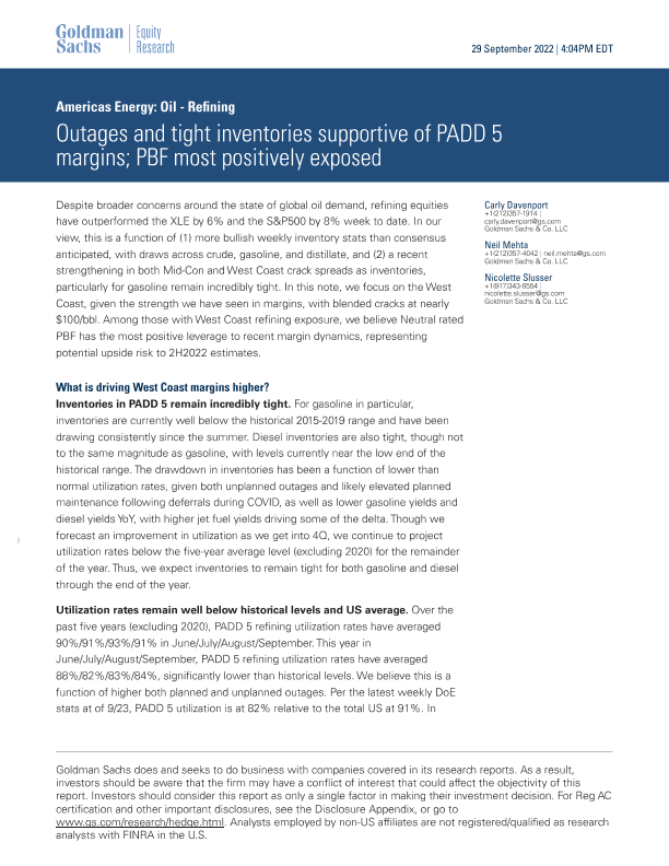 【Goldman Sachs】【20220929】PADD 5库存支持边际收益;PBF最受益-10页