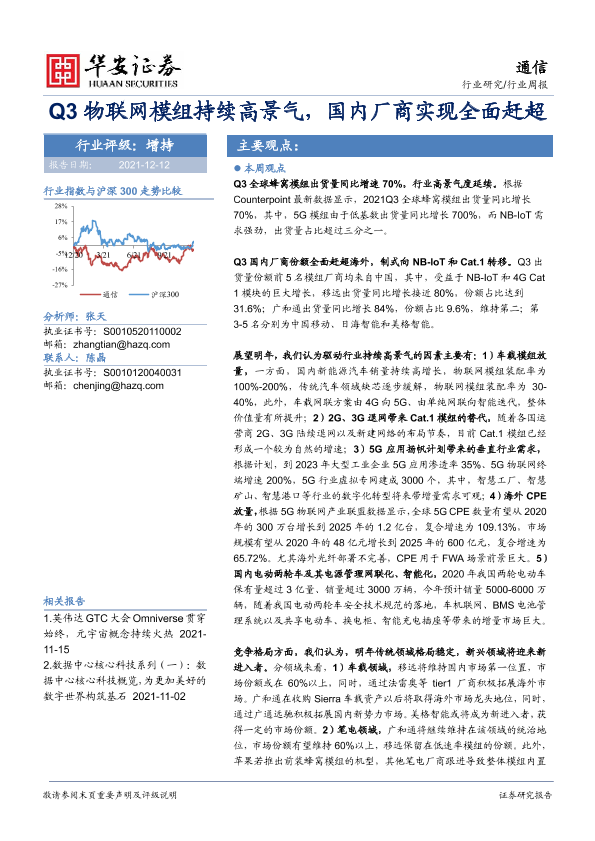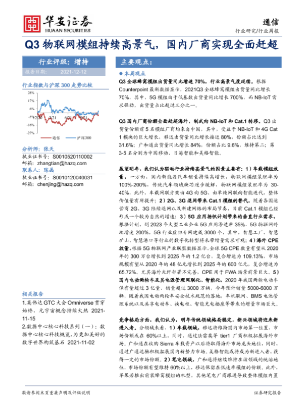 【华安证券】【20211212】Q3物联网模组持续高景气,国内厂商实现全面赶超-16页