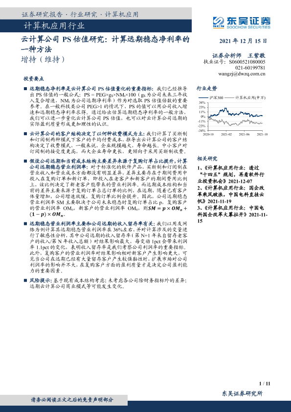 【东吴证券】【20211215】云计算公司PS估值研究:计算远期稳态净利率的一种方法-11页