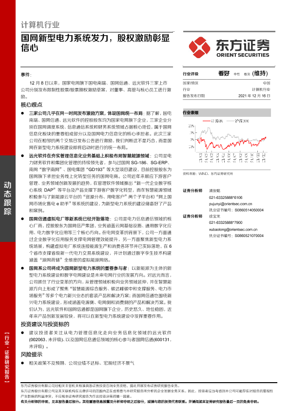 【东方证券】【20211216】计算机行业:国网新型电力系统发力,股权激励彰显信心-4页